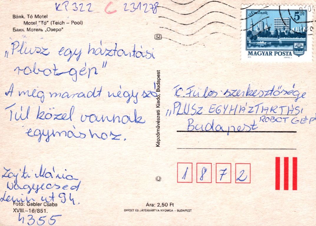 Képeslap hátoldalán: