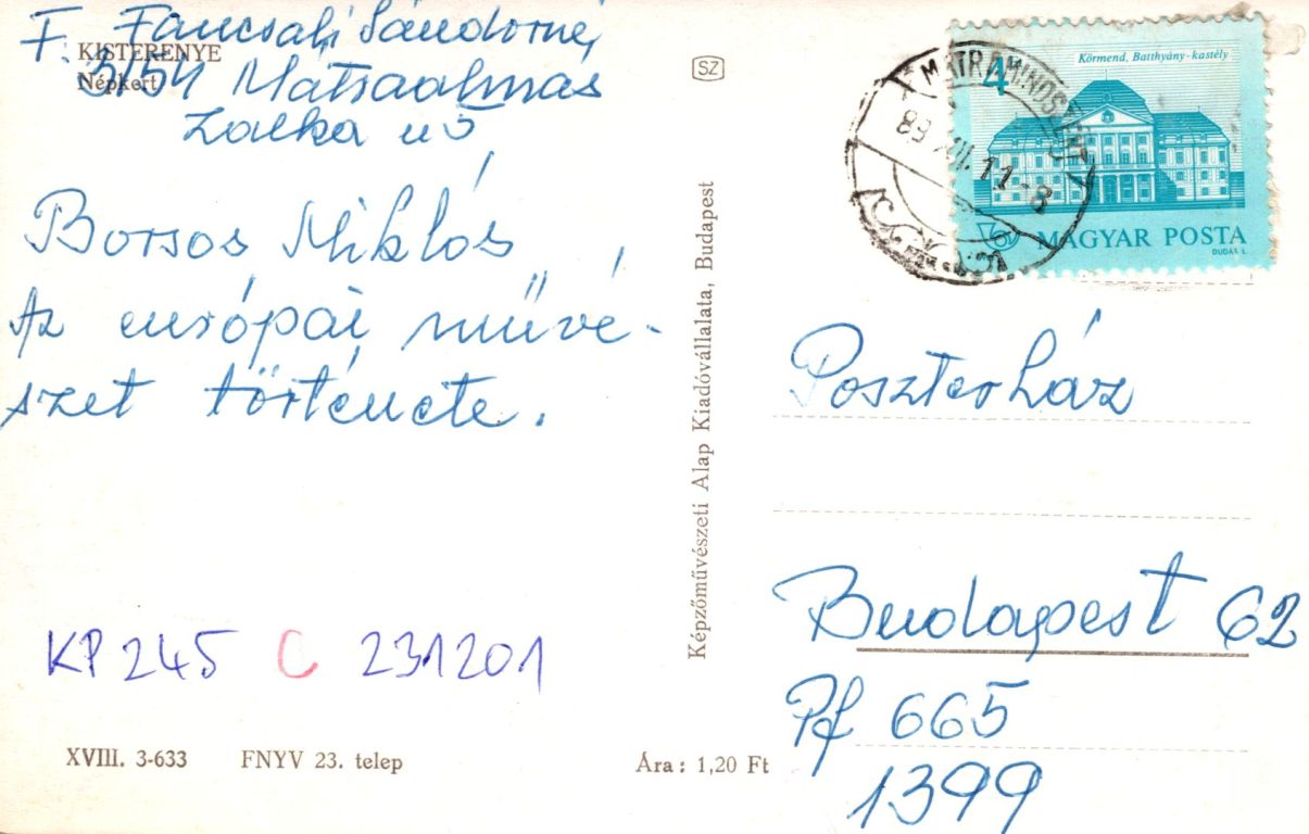 Képeslap hátoldalán: