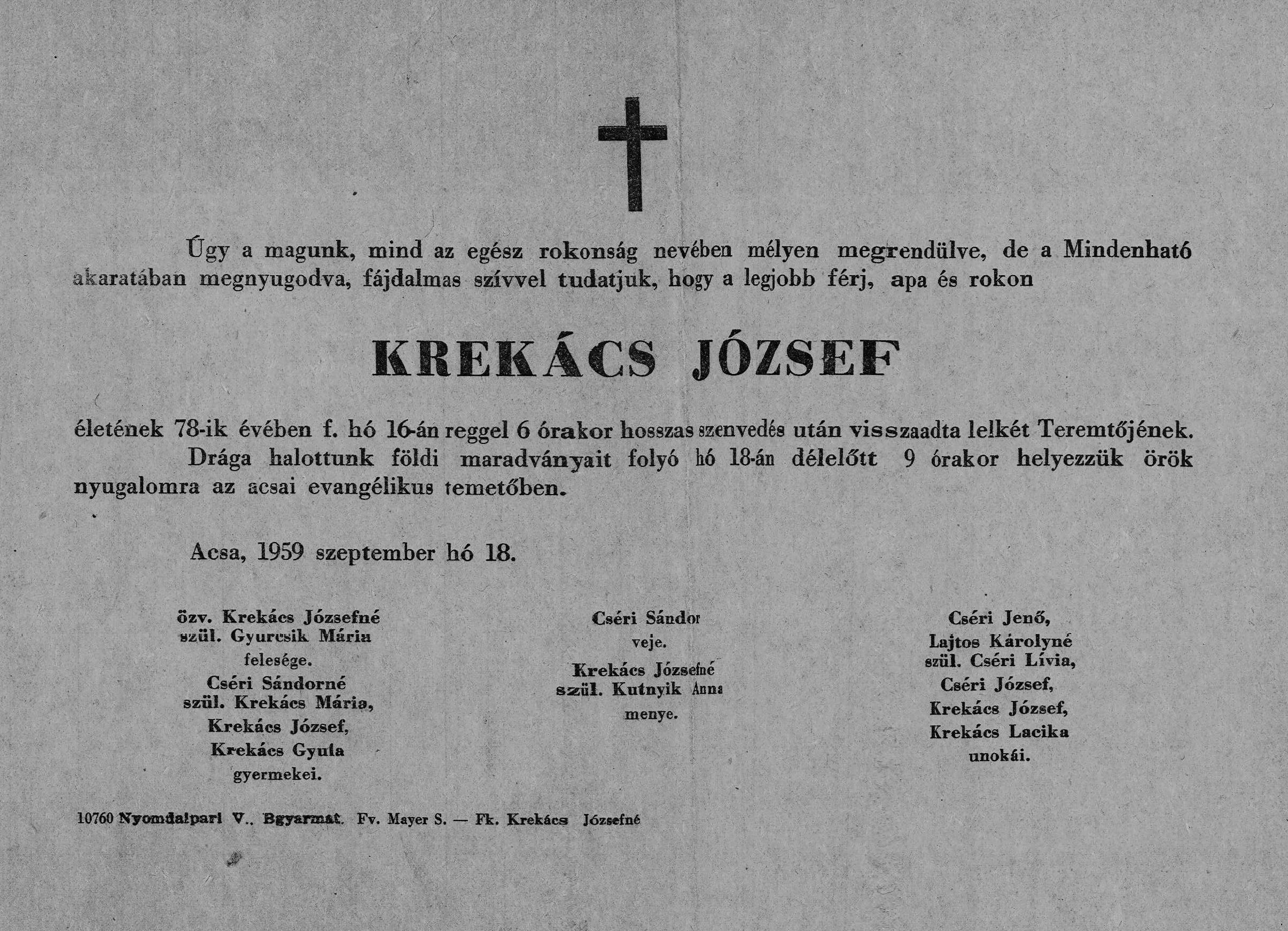 özv. Krekács Józsefné sz. Gyurcsik Mária