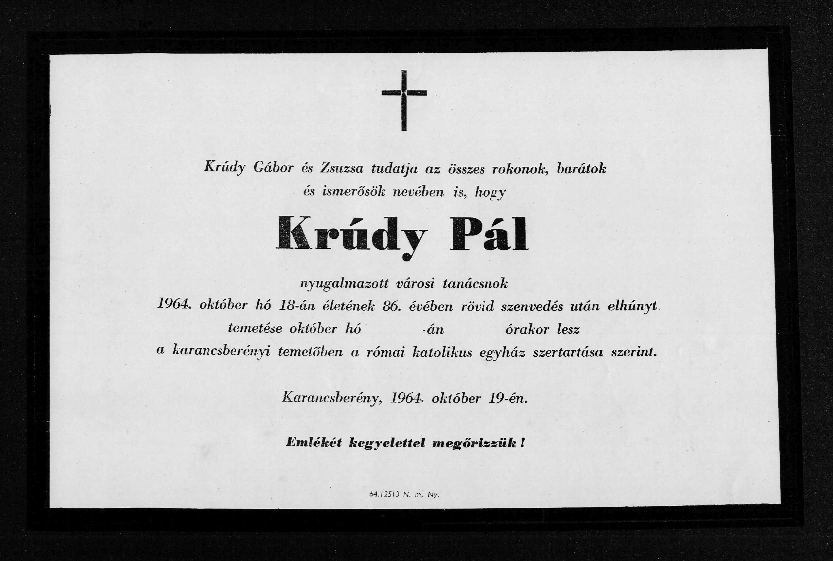 1964. október hó 18-án életének 86. évében rövid szenvedés után elhunyt