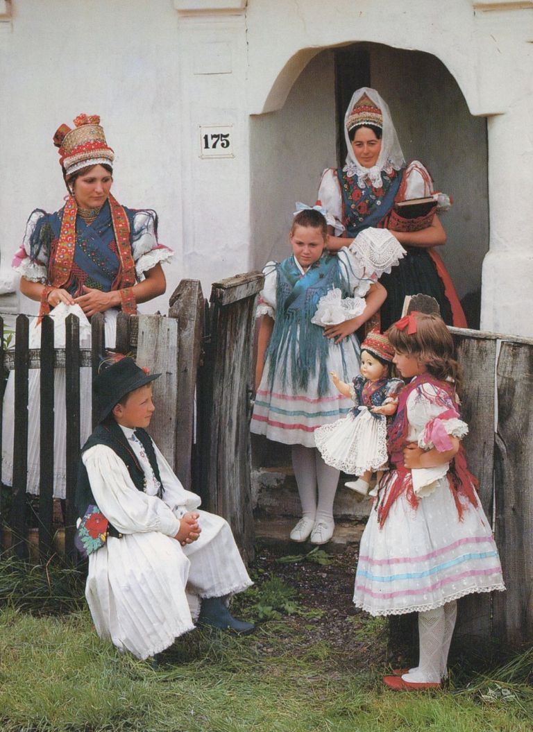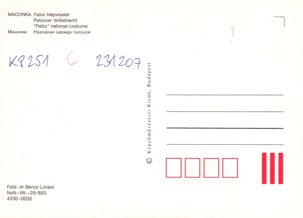A képeslapon palóc népviseletbe öltözött nők és gyermekek Maconkán
