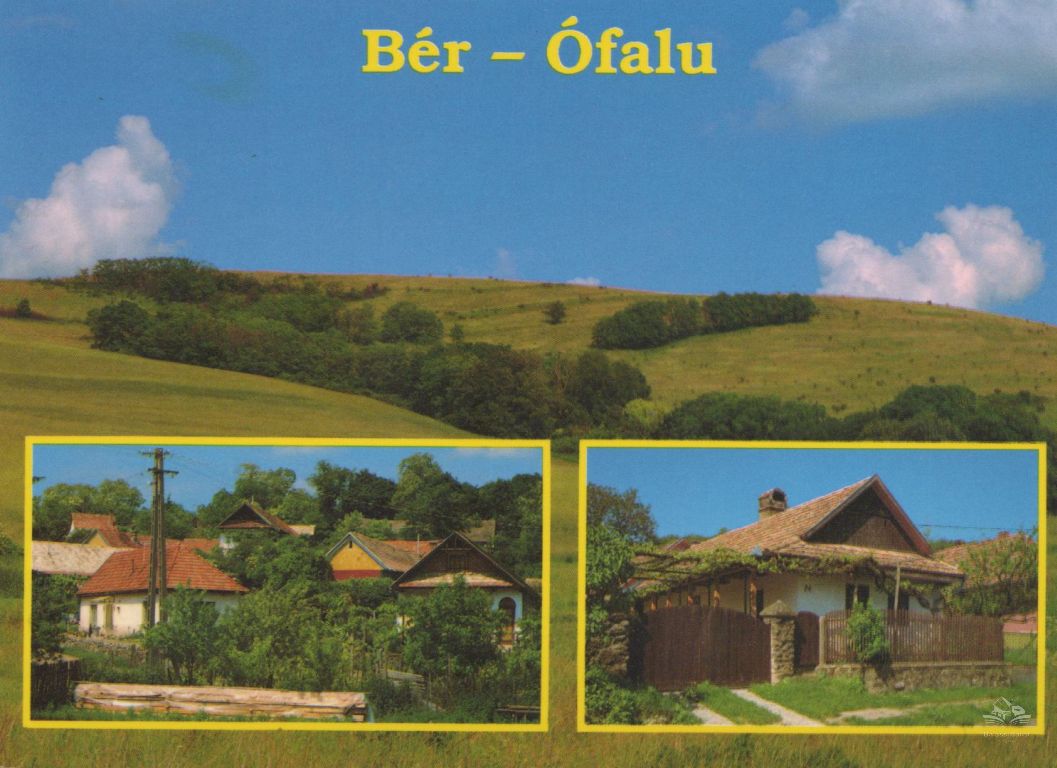 A háromosztatú képeslapon Bér község részletek - látkép, falurészlet, utcarészlet, falumúzeum