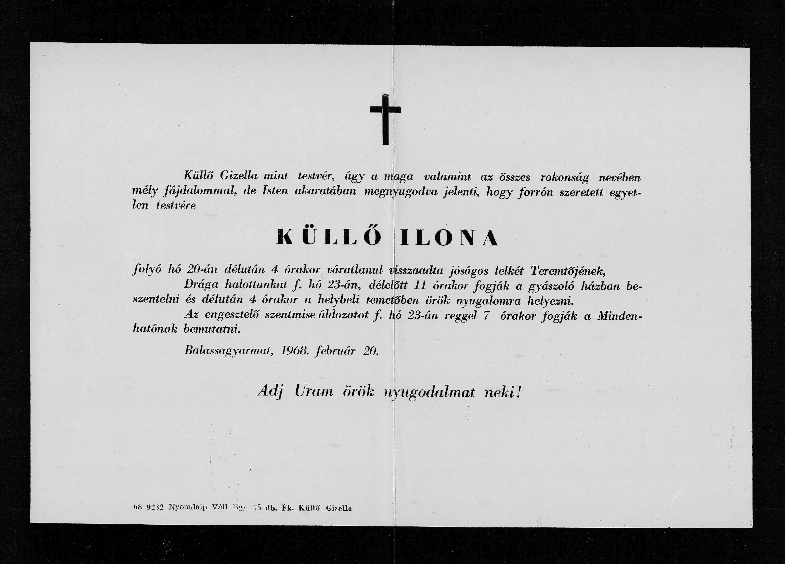Küllő Gizella mint testvér, úgy a maga valamint az összes rokonság nevében