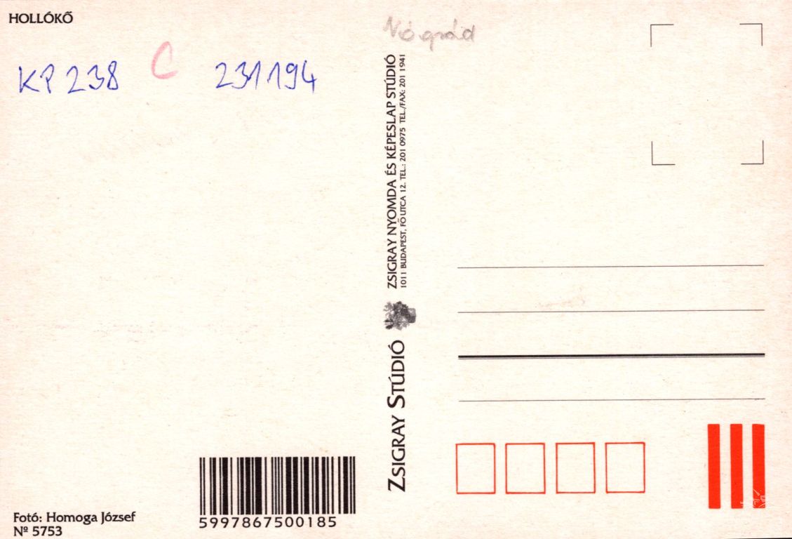Képeslap hátoldalán:
