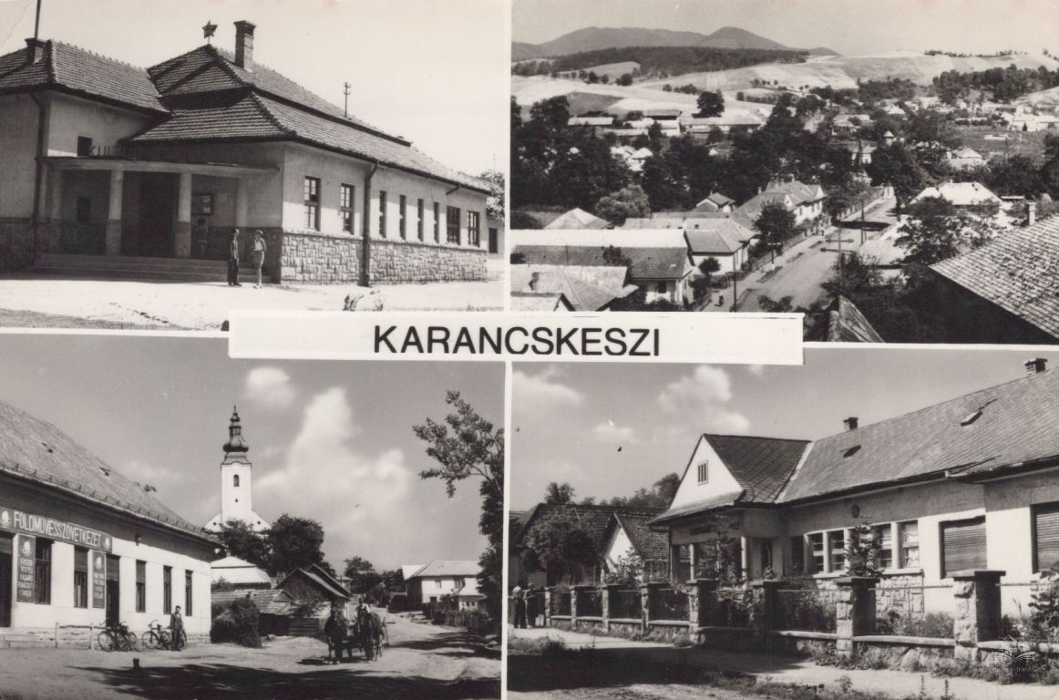 A négyosztatú képeslapon Karancskeszi épületek, látkép