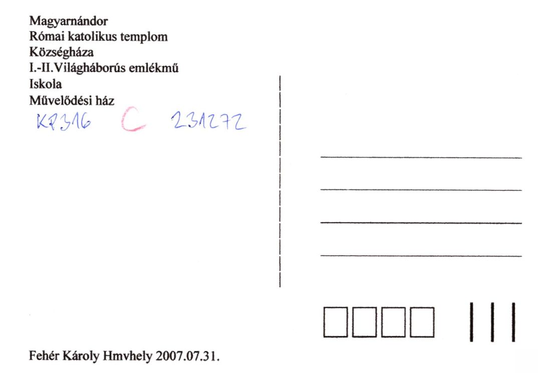 Képeslap hátoldalán: